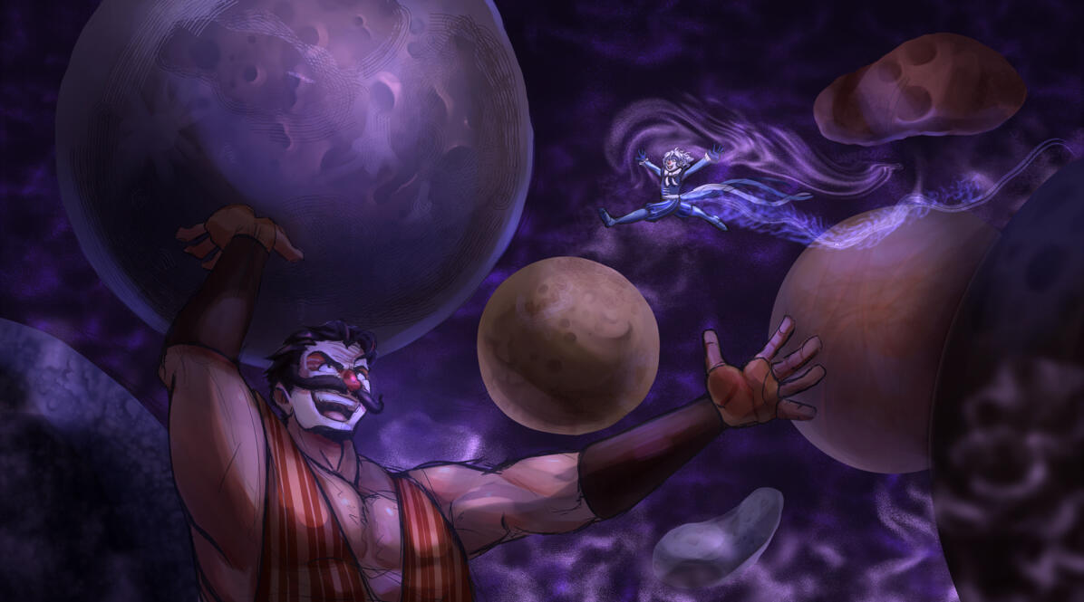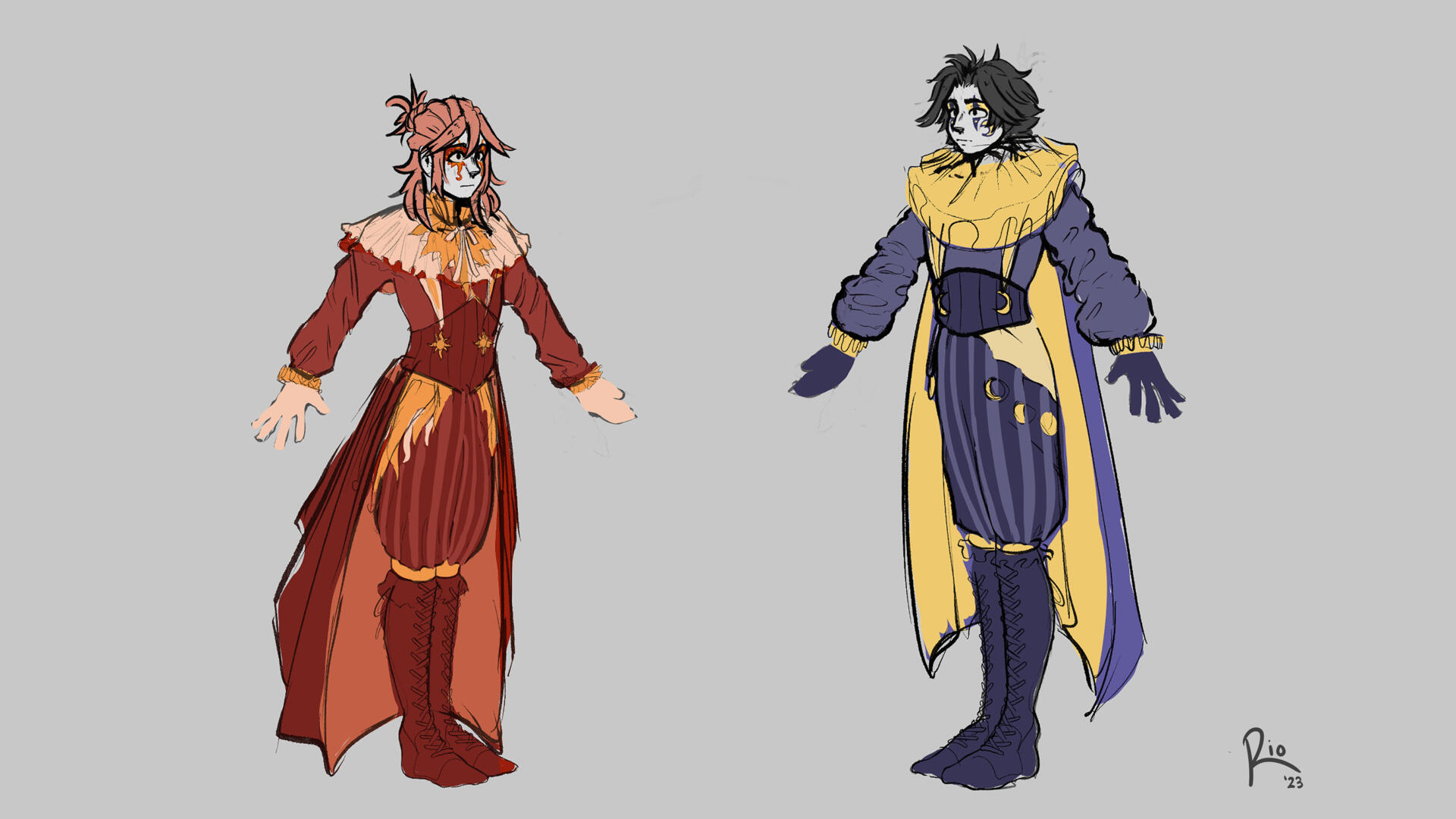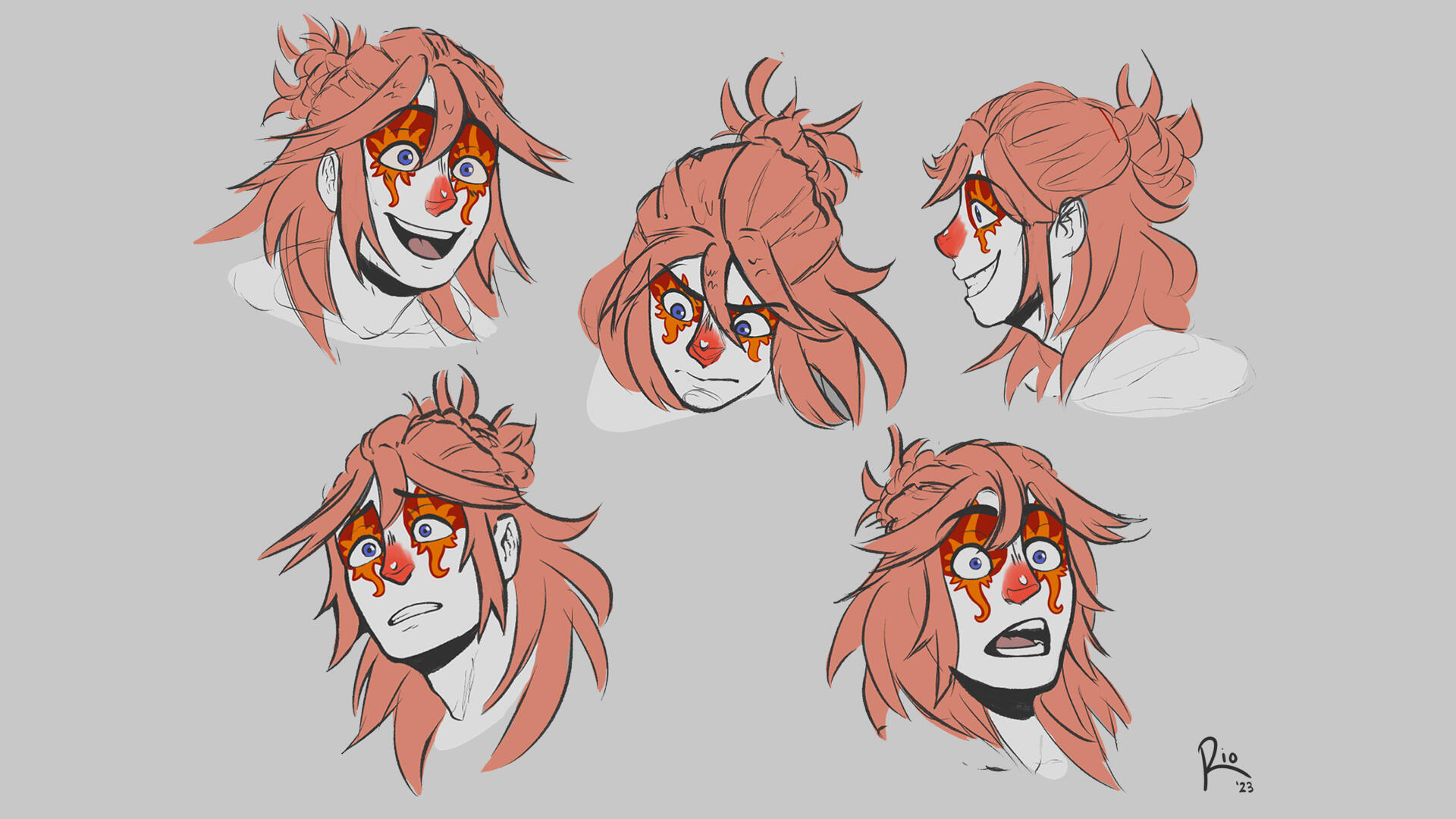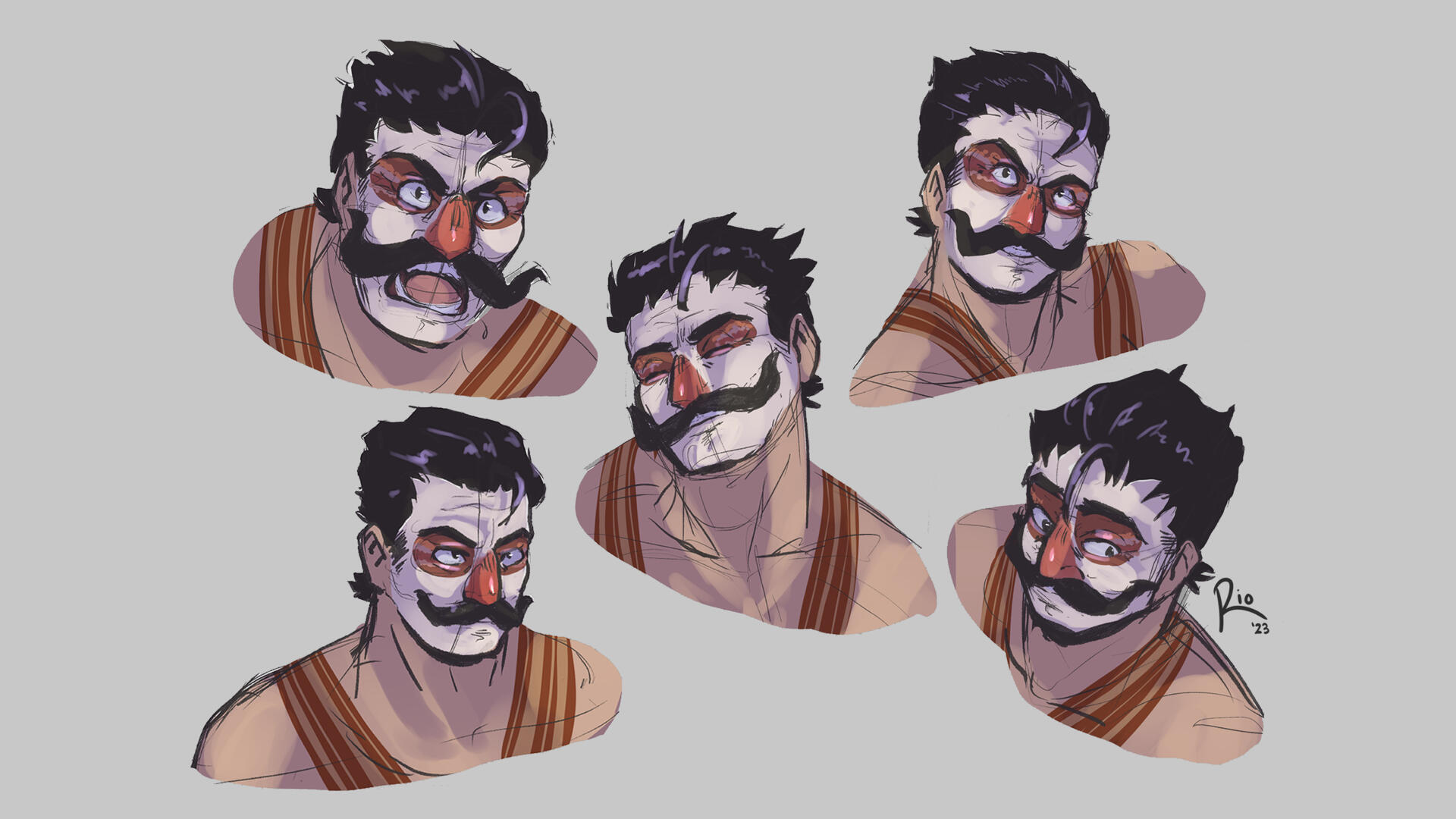 For my undergraduate senior thesis as a Midway Honors Scholar, I conceptualized a 4-character lineup of fictional circus clowns who are part of a space-themed circus named The Night Sky. This project is currently being reworked.