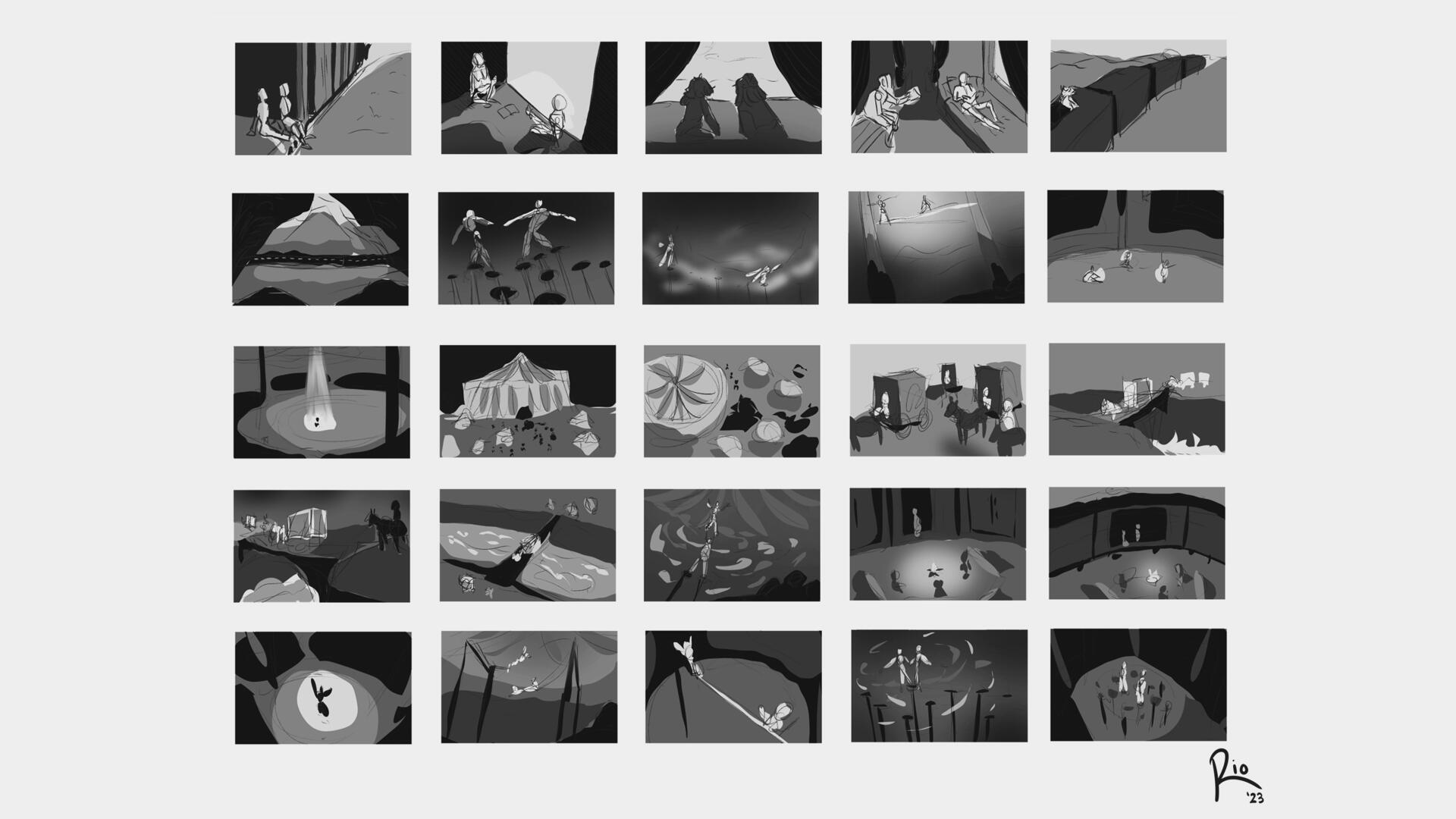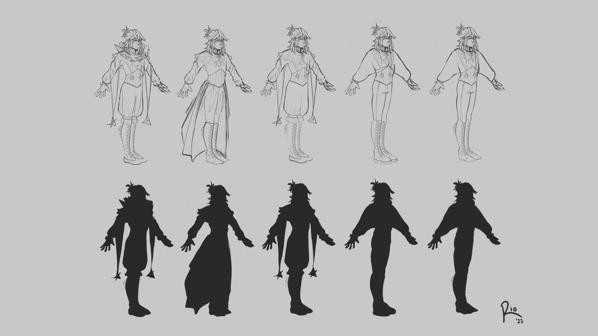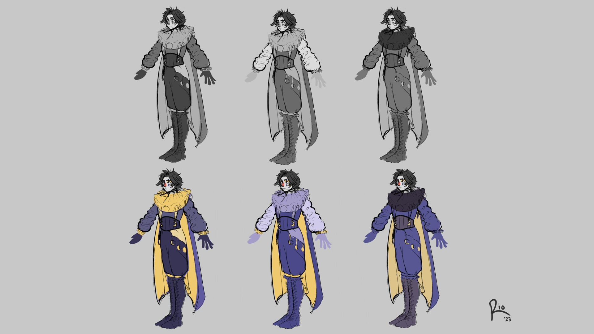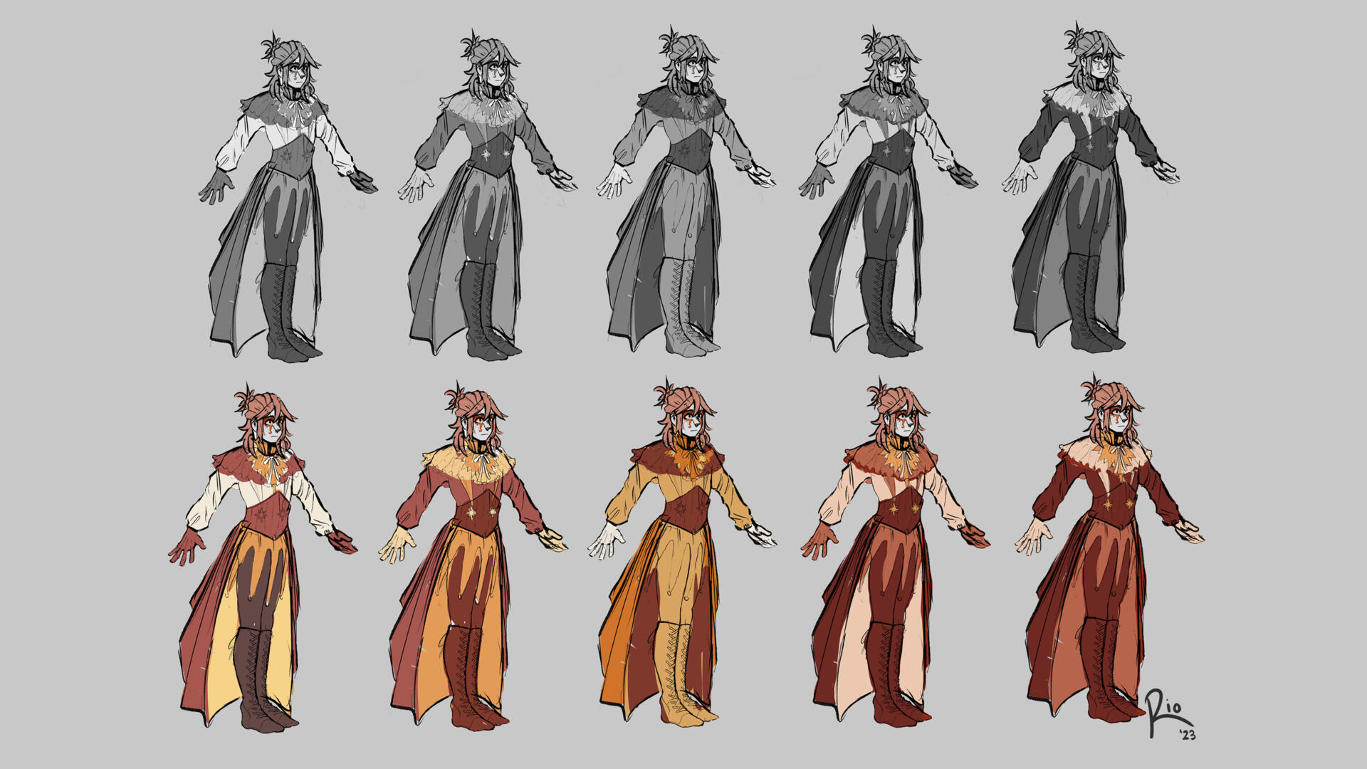 For my undergraduate senior thesis as a Midway Honors Scholar, I conceptualized a 4-character lineup of fictional circus clowns who are part of a space-themed circus named The Night Sky. This project is currently being reworked.